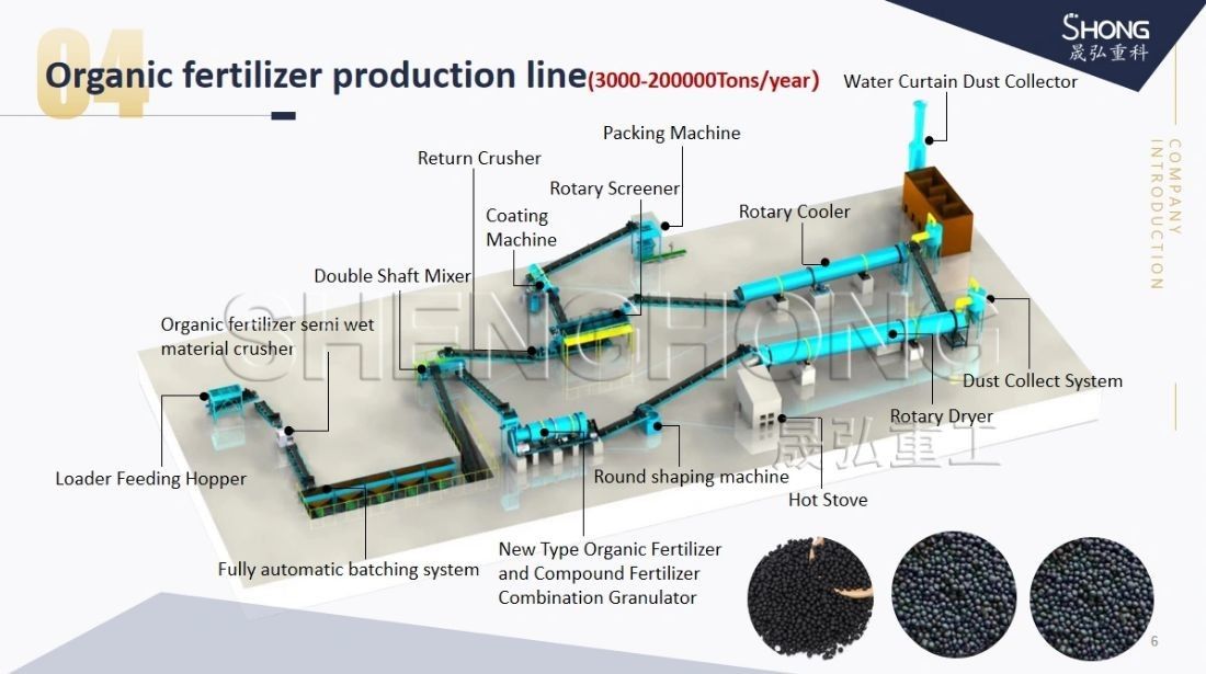 20 ตันต่อชั่วโมง สายการผลิตปุ๋ยคอมพอสต์เพลเลตอินทรีย์
